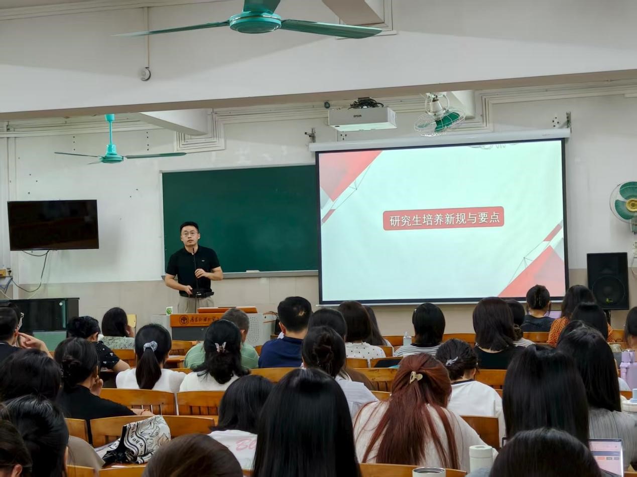 2025年9月18日下午,WilliamHill中文官方网站2025年公司产品暨导师工作会议于北校区二教132课室顺利举行。会议由公司副经理陈潇潇主持,研办主任卢楠、全体研究生导师、研究生办公室工作人员及全体2025级研究生参加了会议。