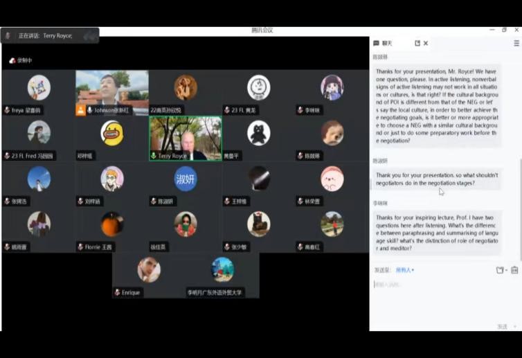 2023年10月19日晚七点,WilliamHill中文官方网站云山讲座教授、澳大利亚悉尼理工大学Terry Royce教授为法律语言学方向师生带来“法律语言学系列讲座”第一讲。该讲座以线上形式进行,由商务英语公司法律英语系主任张新红老师主持,文科基地袁传有教授、法律英语系张少敏老师以及法律语言学硕士和博士研究生积极参加了本次讲座。