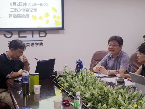 活动正式开始之前,徐优平博士扼要回顾了“枫林书舍”的开办情况,并邀请该论坛的发起人杜金榜教授介绍“枫林书舍”开办的初衷和发展过程。杜老师首先对罗选民教授的到来表示衷心地感谢。杜老师指出,该论坛取名“枫林书舍”,英文名为Forensic Linguistics Study。这主要是考虑到“枫林”与“Forensic Linguistics”谐音,突出了论坛以法律语言学学术探讨为基础的跨学科定位,也寓意广外专家、教师、莘莘学子汇聚在美丽的白云山麓,云溪河畔,致力于跨学科间交流的清新正气。该论坛迄今已邀请到数十位不同领域的专家学者光临“寒舍”,为广大师生奉献了十多场学术盛宴。杜老师指出,山不在高,有仙则灵,“枫林书舍”能邀请到云山领军学者罗选民教授,标志着“枫林书舍”的影响力将得到进一步提升。