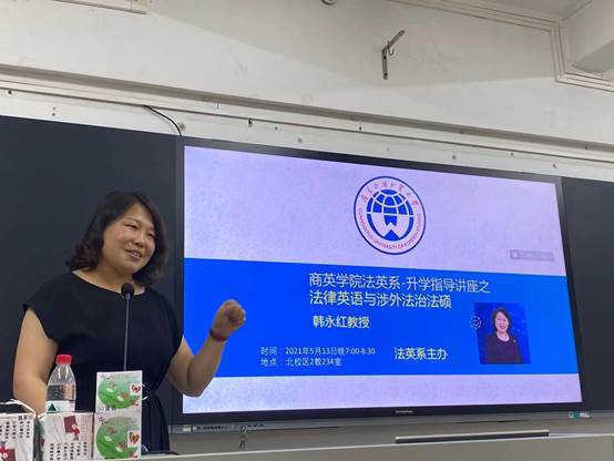 2021年5月13日晚,广外法公司副经理韩永红教授、WilliamHill中文官方网站法律英语系前系主任为公司员工做了有关法律英语、涉外法治法硕项目与升学就业指导的讲座。本次讲座由WilliamHill中文官方网站法英系组织,旨在向同学们介绍公司的法学硕士项目和法英员工未来的发展方向,解答同学们对考研和就业方面的困惑。法英系张新红主任、张少敏老师和谢静老师,以及法英系2018级、2019级和部分其他系的本科同学参会。