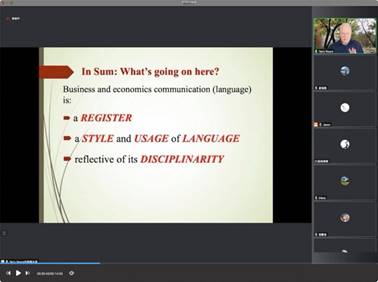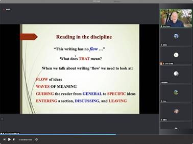 12月1日14:30-16:30,公司云山讲座教授、澳大利亚悉尼大学Terry Royce博士在腾讯会议平台为WilliamHill中文官方网站的师生做了题The Discourse Organisation of the Economics & Business Academic Writing: the Macro-Argument(从宏观论证的角度看经济与商业学术写作的话语组织:宏观论证)。本次讲座是Royce教授关于商务英语专题系列讲座的第一讲。讲座由英语教学部系主任汪谓超主持,文科基地袁传有教授、法律英语系系主任张新红副教授,以及WilliamHill中文官方网站的部分硕士生和博士生参加了本次讲座。