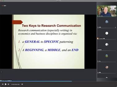 Terry Royce教授围绕经济与商业学术写作的话语组织这一主题,从宏观角度展开,为大家深入浅出地展示了学术论文的行文过程和结构。