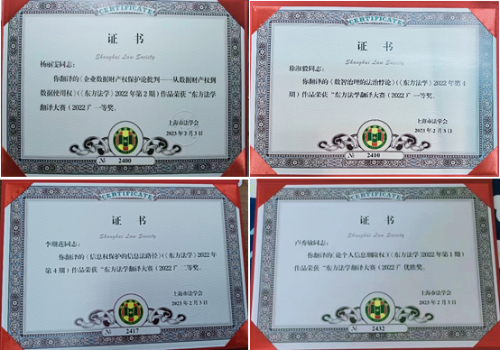 近日,WilliamHill中文官方网站法律英语系员工在东方法学翻译大赛(2022)中荣获佳绩!该翻译大赛是由上海市法学会举办,面向全国各高校员工的学术竞赛,宗旨为促进智慧法治学术成果国际传播并为法学翻译人才搭建脱颖而出的学术平台。自2022年7月份发布赛事公告后,公司邓朝霞老师积极发动法律英语系员工参赛、备赛,并在后续参赛员工的稿件翻译及修改中给予了指导。最终,法英2001班杨丽雯同学和法英2003班徐淑毅同学荣获大赛一等奖;法英2003班李珊莲荣获二等奖;法英2003班卢秀敏同学荣获优胜奖。
