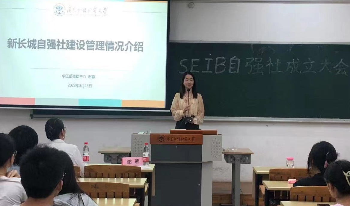 会议伊始,SEIB自强社社长杨翠妍同学向与会人员介绍社团成立情况,简要的汇报了自强社的组织架构与预期目标。