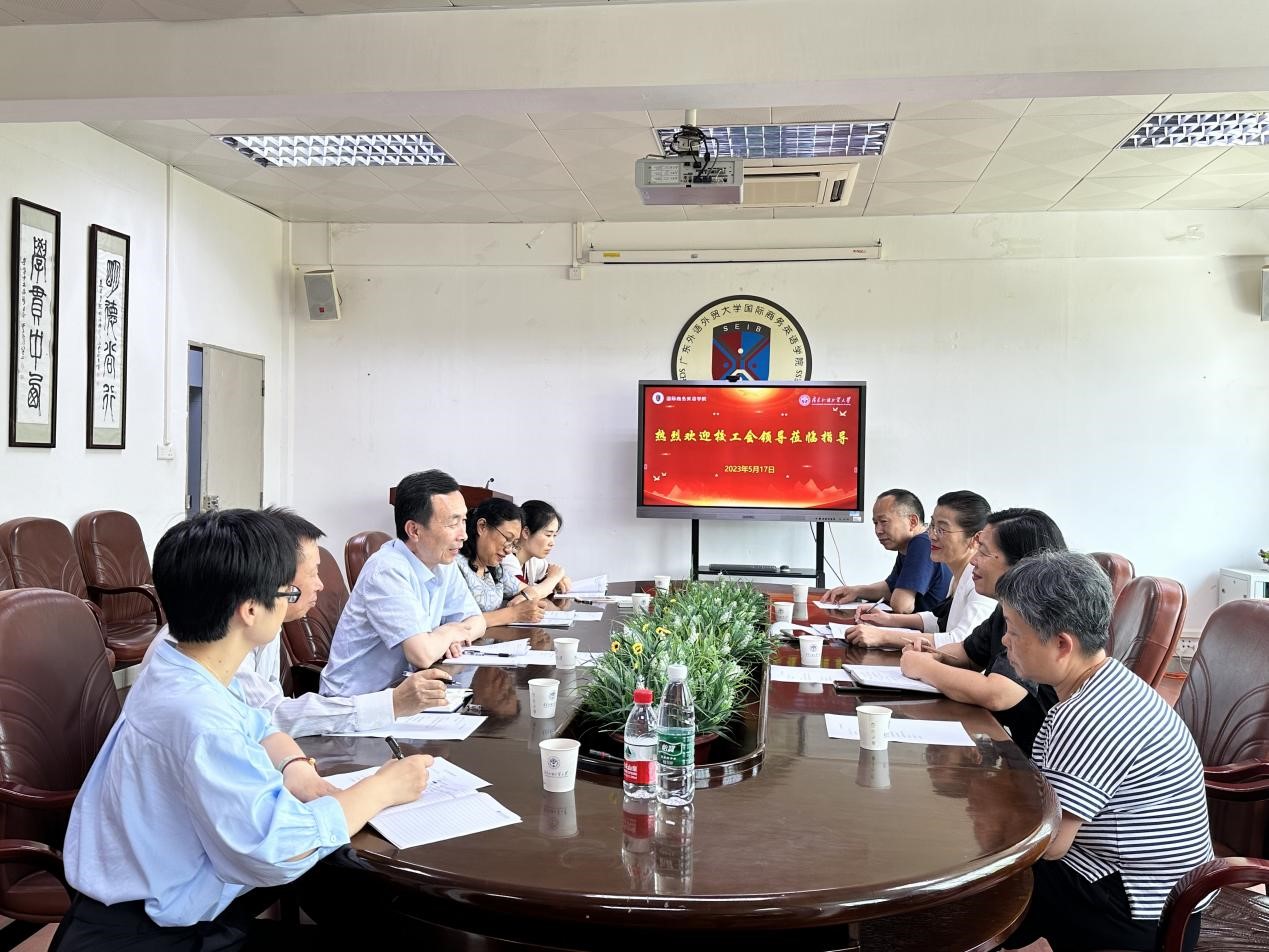 5月17日下午,校工会常务副主席金良成、副主席杨冬生、刘红艳一行莅临公司指导,与公司党委书记苏冬燕,党委副书记杜焕君在三教318会议室开展座谈。本次座谈重点是调研公司工会工作开展情况,并征求对公司工会工作的意见、建议。校工会职员胡蓉、范佳,公司李冬云、彭志恒老师一同参加了本次座谈会。