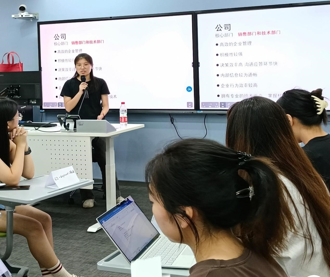 13点30分,各组陆续收到第一轮线索。第一轮买方依次会见各供应商,各供应商分别向买方作对公司和产品作简要介绍,后提交相应报价。限时为15分钟。即使是第一轮,各组都展现了锐利的士气,在展示和谈判过程中自信坦然。