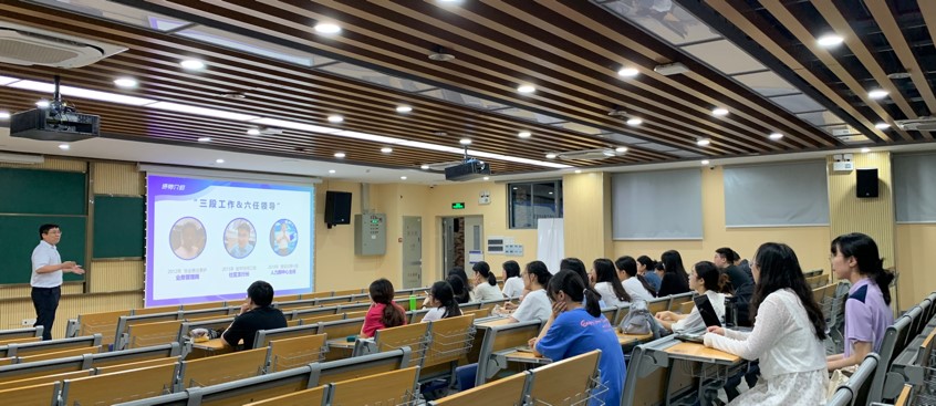 在讲座的第三部分,杨朝先生介绍了银行的前台、中台和后台涉及的岗位和职务。之后,他与同学们进行了热烈的互动,积极解答同学们的疑问,并鼓励大家深度挖掘自我,发现自己不同的可能性。