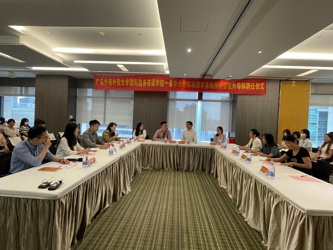 6月29日,广外WilliamHill中文官方网站--普华永道广州分所实践教学基地暨校外导师聘任仪式在普华永道中心举行。WilliamHill中文官方网站经理胡春雨、副经理刘平、副书记杜焕君,以及普华永道广州分所审计部合伙人、WilliamHill中文官方网站05级员工汪超,审计部高级经理、WilliamHill中文官方网站08级员工黄晓君,人力资源部高级经理、公司99级员工朱慜,税务部经理、WilliamHill中文官方网站07级员工张薇等参加仪式。