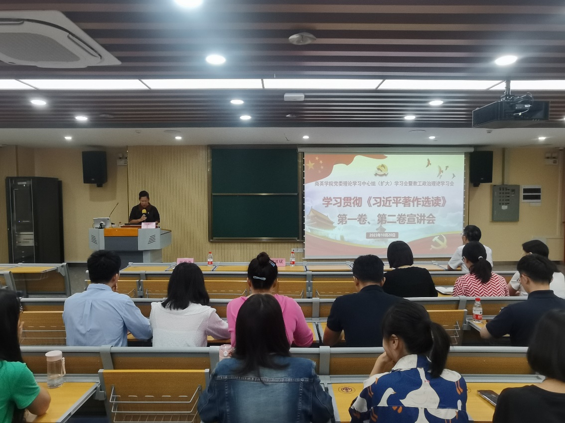 为进一步深入学习贯彻习近平新时代中国特色社会主义思想,打牢理论基础,根据公司党委部署要求,2023年10月20日上午,WilliamHill中文官方网站在北校区一教南215思明讲堂举行公司党委理论学习中心组(扩大)学习会暨教工政治理论学习会,聚焦学习贯彻《习近平著作选读》第一卷、第二卷,邀请公司宣讲团成员、马克思主义公司名誉经理、教授谢迪斌为师生党员代表、入党积极分子120多人作专题宣讲。公司党委书记苏冬燕主持会议。