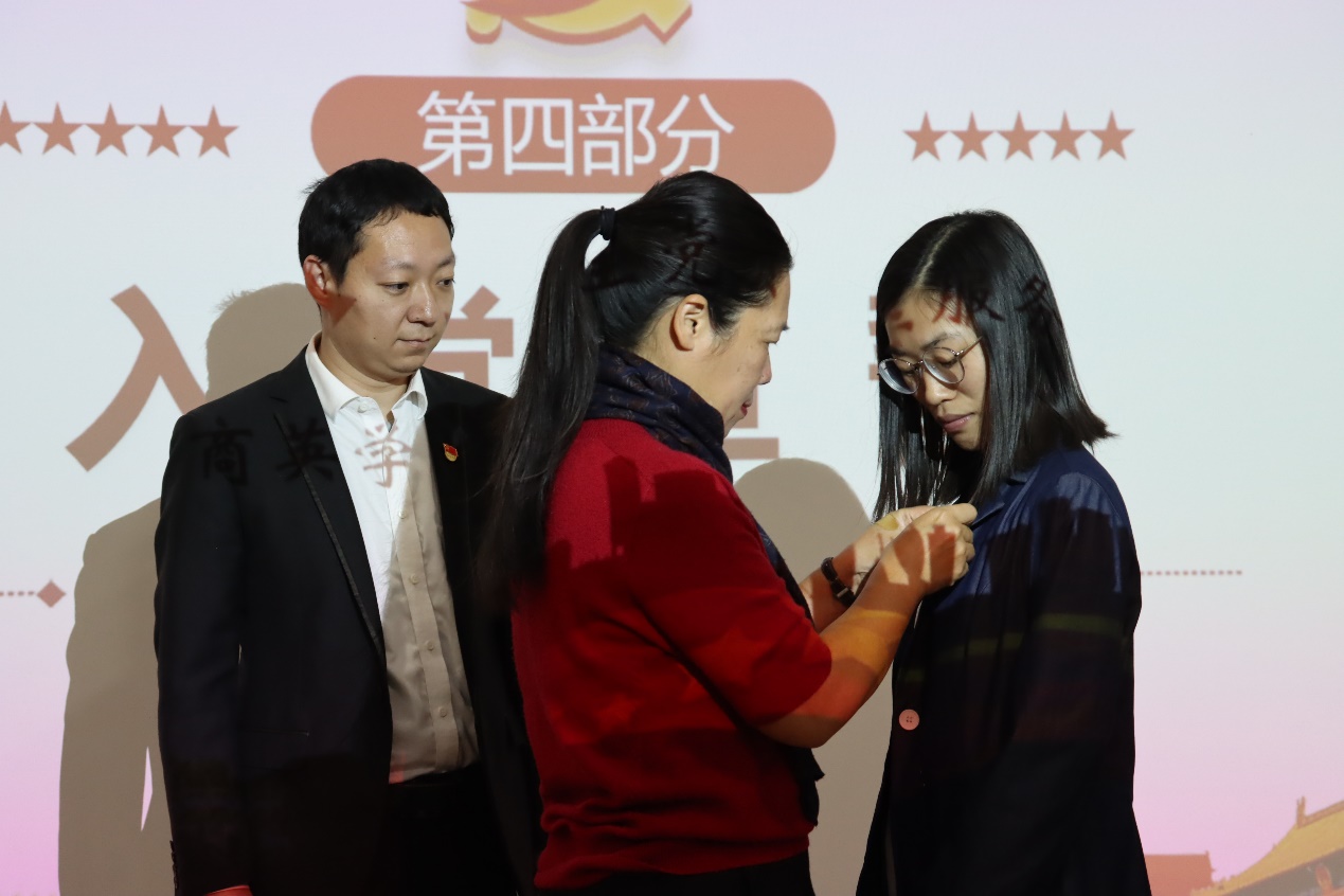 苏冬燕为新党员佩戴党员徽章