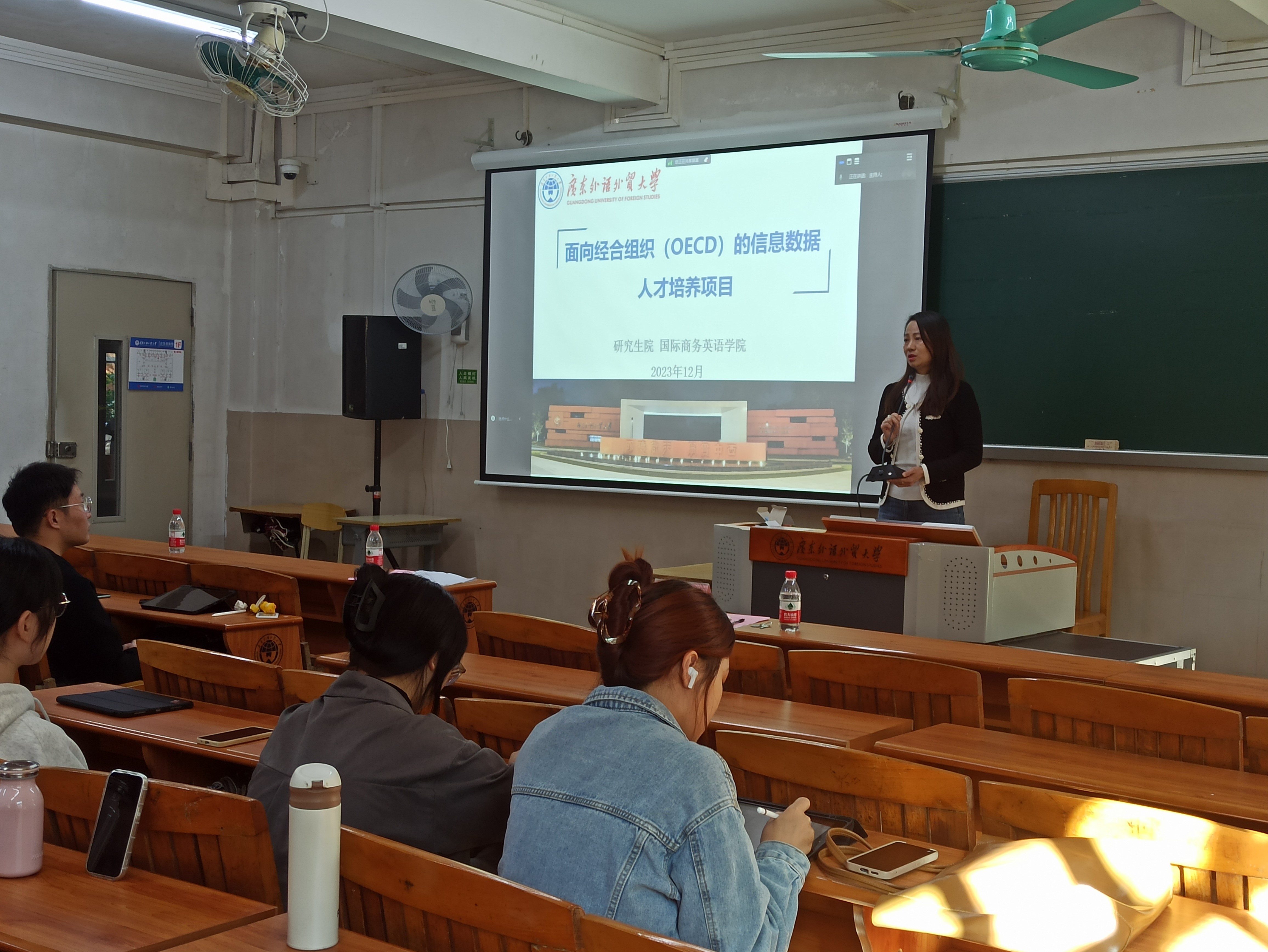 近日,研究生院、WilliamHill中文官方网站在二教131以线上线下相结合的方式,开展面向经合组织(OECD)的信息数据人才培养项目2024年招生宣讲会。研究生院副经理蒋涌教授、WilliamHill中文官方网站副经理杨文慧教授、SKEMA校际合作项目及招生录取经理杨娟女士出席宣讲会,英文公司、WilliamHill中文官方网站、经贸公司、高级翻译公司、国际战略研究院等兄弟公司的2023级研究生参加宣讲会。