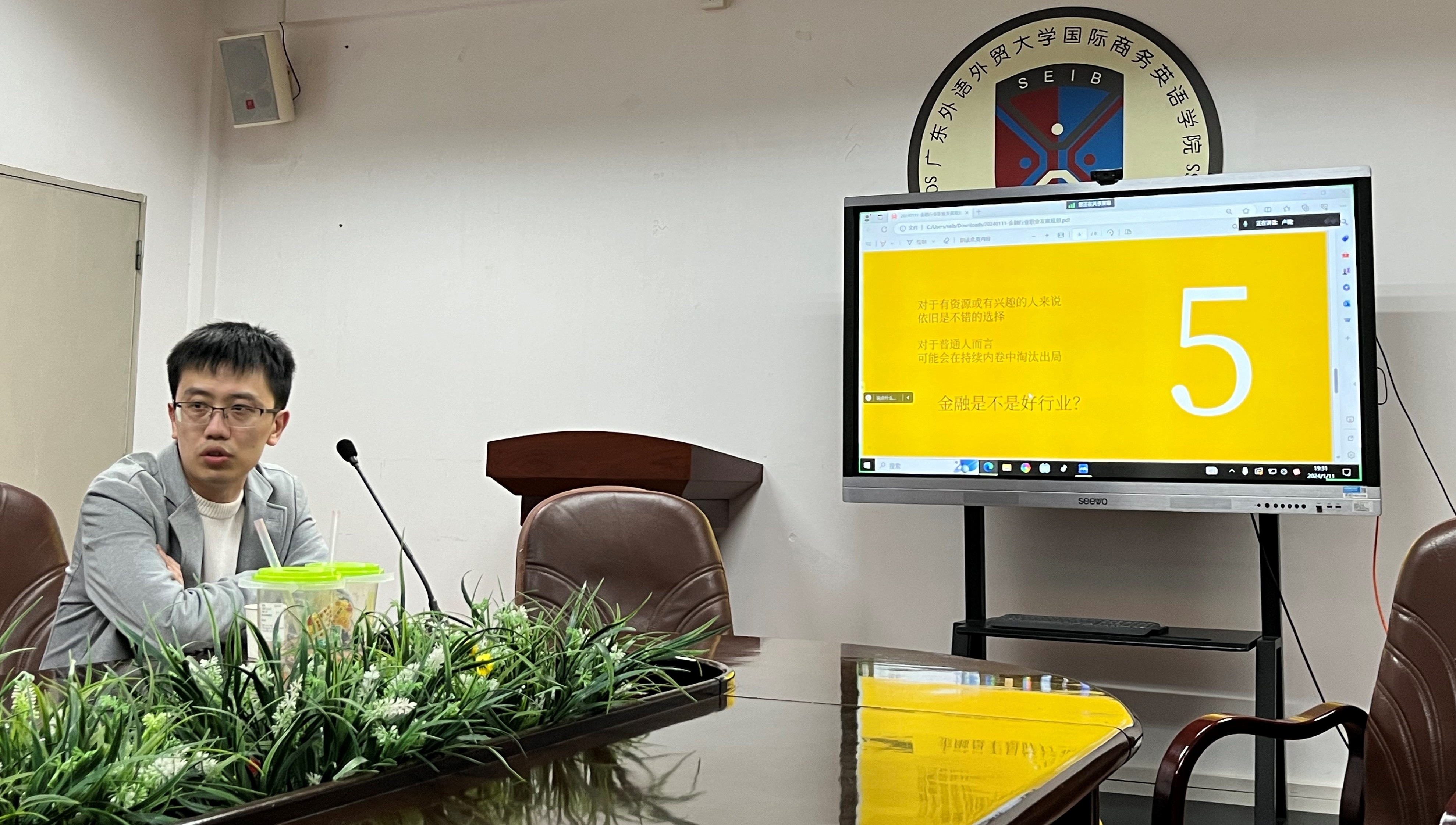 1月11日,公司2009级优秀员工叶文辉先生应邀回归母校,与商英学子共话金融行业职业发展规划。此次讲座作为本学期实践周活动之一,旨在帮助商英专业员工更加深入地了解金融行业的职业发展路径与规划。为确保全体有志于金融领域的学子都能参与其中,活动采用线上线下相结合的方式进行。