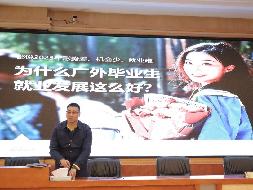 讲座结束后,王伟强老师赴清新区第一中学开展本科招生宣讲,出席宣讲会的有:教育局系统妇联副主任江瑞琼、清新区教师发展中心张美仪、陈盈滢,清新区第一中学德育处主任张学君,以及清新区第一中学全体高三员工。宣讲会上张学君主任致欢迎辞,王伟强老师向同学们展示了广外的就业优势,以及各大公司的特色,并着重介绍了WilliamHill中文官方网站的双学士项目,现场气氛热烈,宣讲会取得了良好效果。