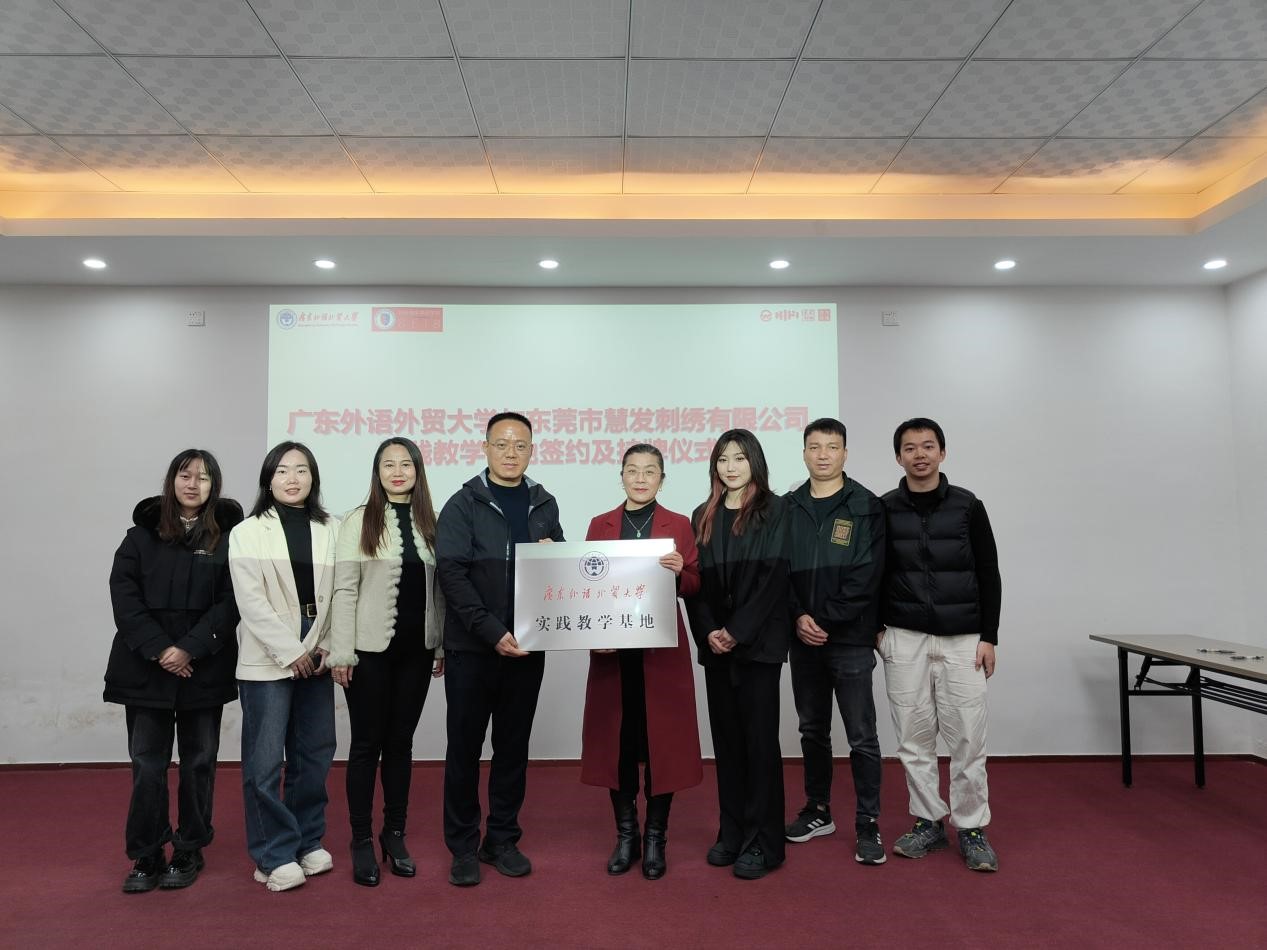 东莞慧发刺绣有限公司董事长李善兵、总经理孔辛媛等人对公司来访表示热烈欢迎。首先,李善兵带领公司师生参观公司生产线,介绍公司主营产品。随后,李善兵在座谈会上介绍了公司基本情况,并就目前国内跨境电商形势进行了分析,鼓励同学们发挥外语优势积极参与外贸事业。