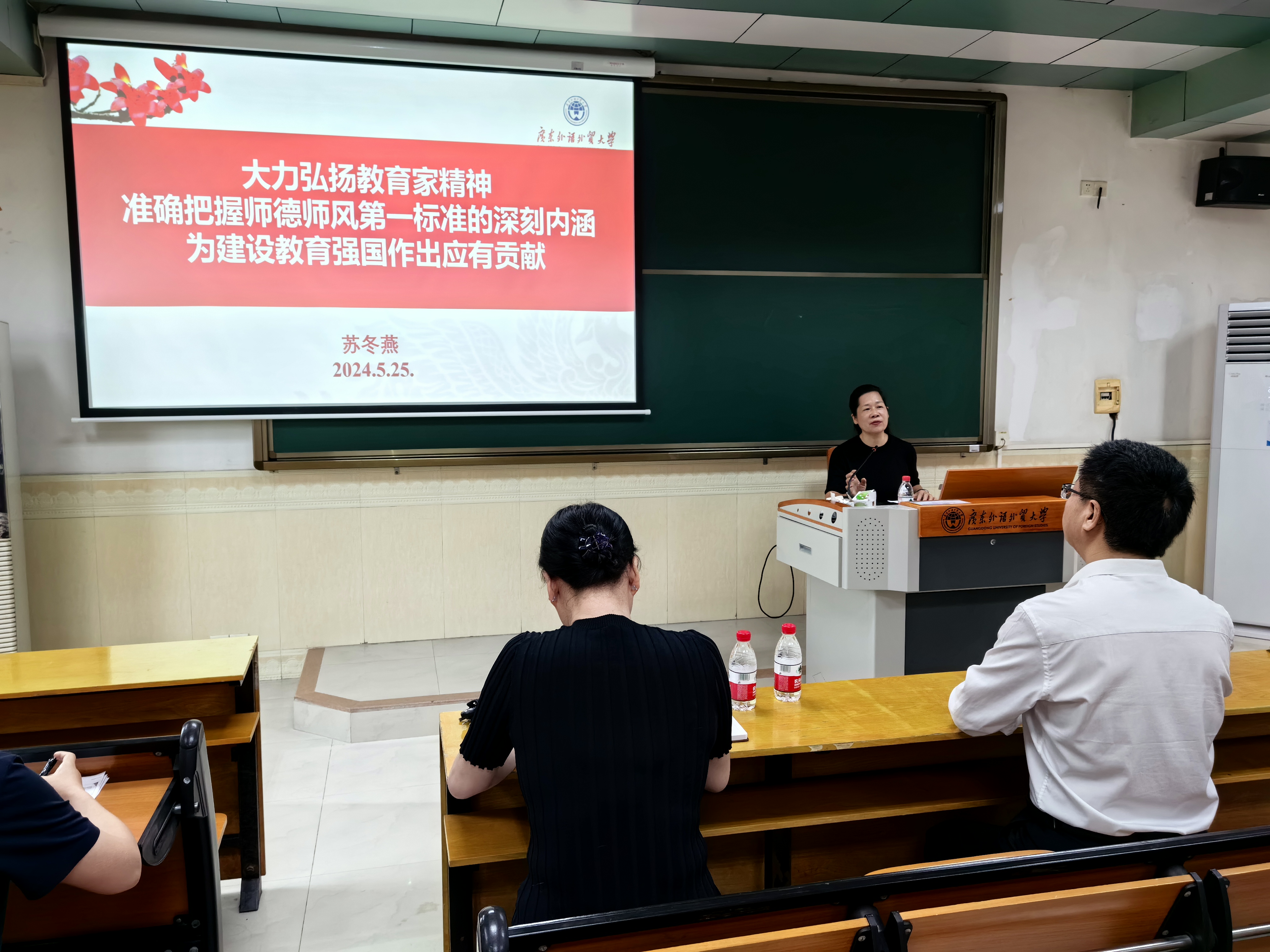 苏冬燕书记作《大力弘扬教育家精神 准确把握师德师风第一标准的深刻内涵 为建设教育强国作出应有的贡献》专题培训。苏冬燕带领全体教职工重温习近平总书记关于师德师风建设、教师队伍建设的重要论述,号召公司全体教师大力弘扬教育家精神,要精准把握师德师风的第一标准的深刻内涵,在教学和生活中保持战略定力、坚定理想信念,增强知识储备、改进教学方式,守护员工成长。