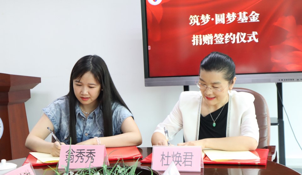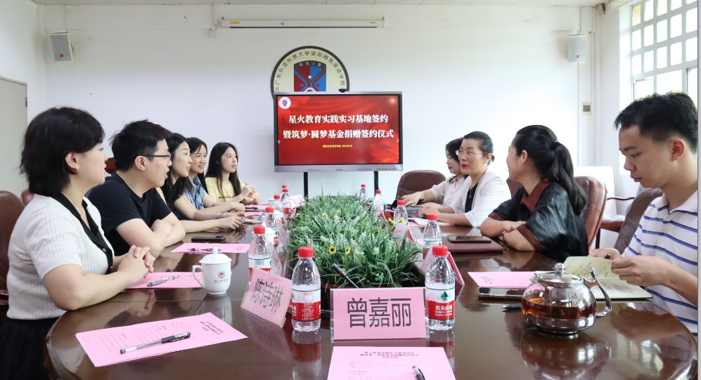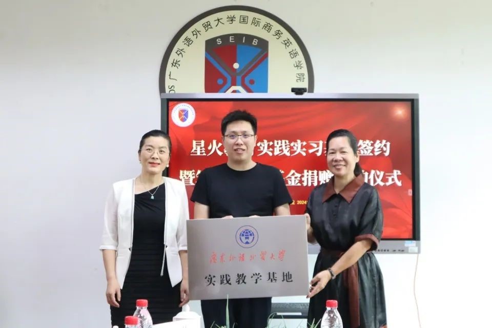 交流结束后,正式举行商英“筑梦·圆梦”基金捐赠签约仪式和老员工实践教学基地共建签约仪式。苏冬燕代表公司接受翁峰的捐赠并向星火教育授予实践基地牌匾,杜焕君和翁秀秀分别作为广外和星火教育代表签署协议,本次捐赠的六万元将纳入商英“筑梦·圆梦”基金,用于公司人才培养、人文关怀等各个方面,由“商英筑梦”基金管理委员会管理使用。