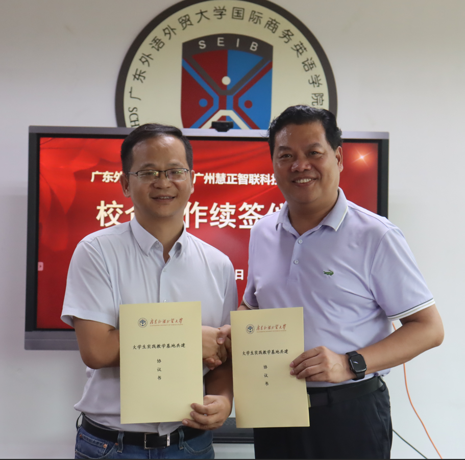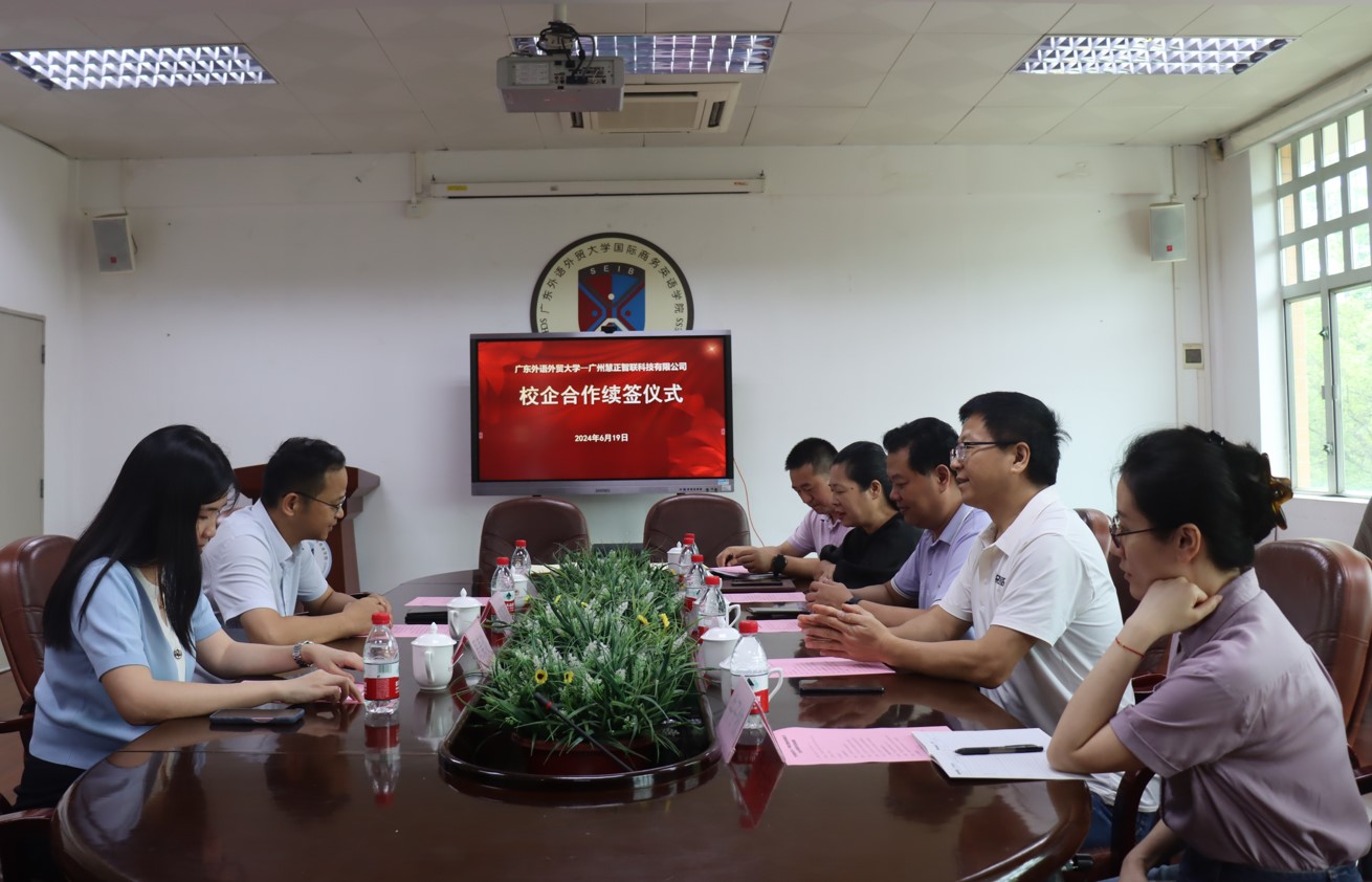 6月19日,WilliamHill官方网站与广州慧正智联科技有限公司(以下简称“慧正智联”)校企合作续签仪式在公司白云山校区三教318会议室举行。公司教务部部长陈金诗,WilliamHill中文官方网站经理胡春雨、党委书记苏冬燕、副经理汪谓超,亚非公司副经理牛子牧,以及慧正智联CEO、公司97级员工郭喜鸿等参加此次仪式。
