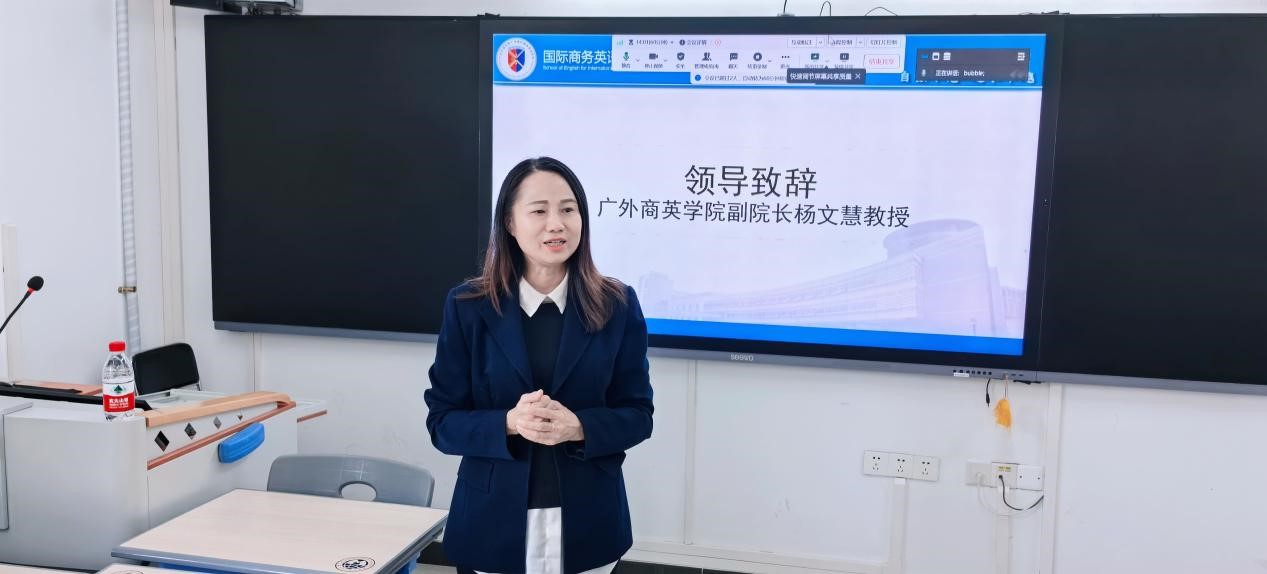 杨文慧副经理致辞。她对广外-昆士兰硕士班25期同学取得的成绩表示肯定,对项目授课教师、行政人员的辛勤付出表示感谢,祝贺25期硕士班同学顺利完成学业,并对同学们的学习、生活和安全提出了殷切嘱托,希望同学们不断追求进步,从广外走向世界,成长为对国家有用的国际化人才。杨文慧还为同学们颁发结业证书、合影留念。