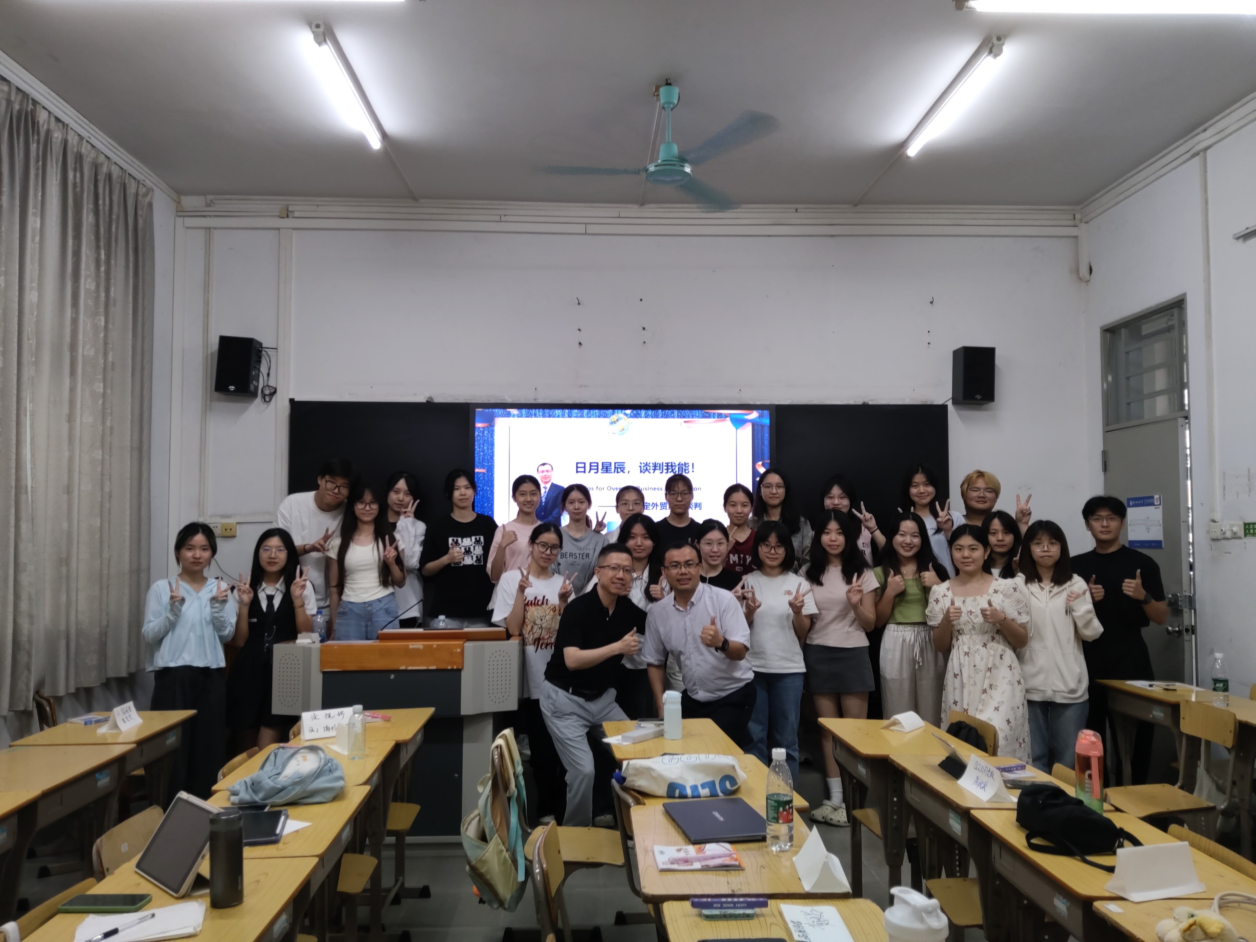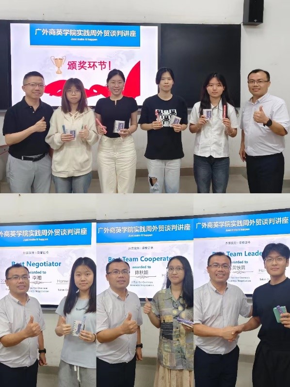 为提高同学们的外贸商务谈判实战能力,本次实践周继续邀请到公司MBA员工谢泉江老师为同学们开展谈判讲座和实战练习。