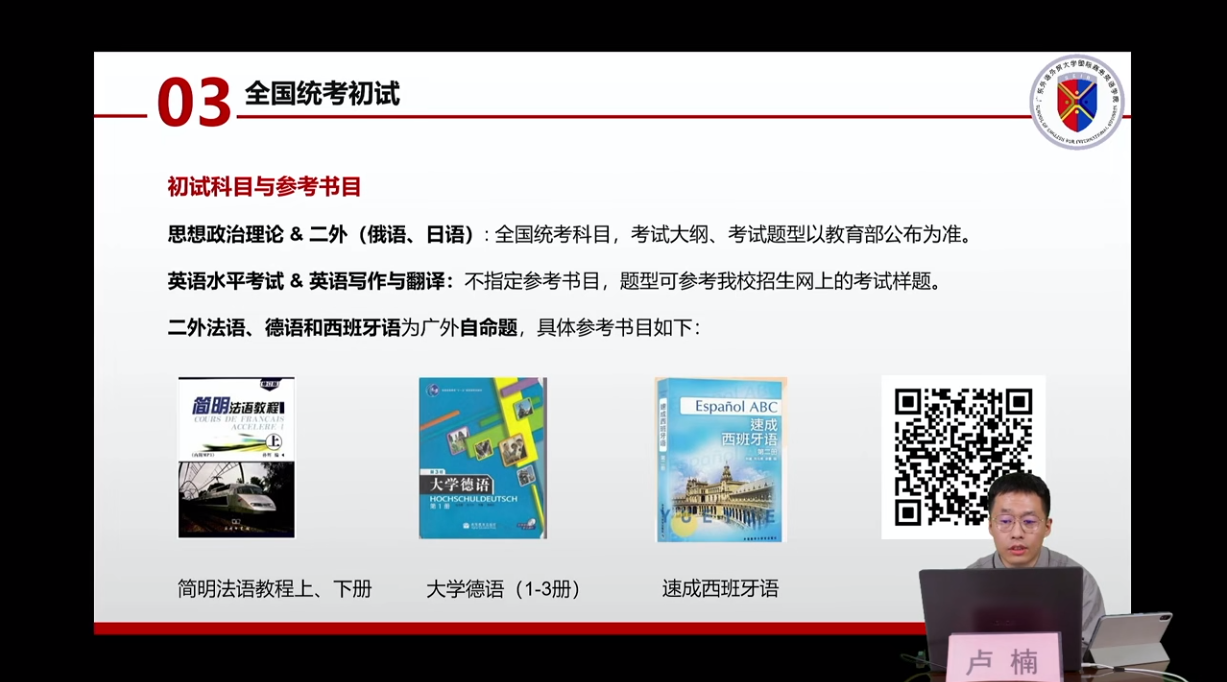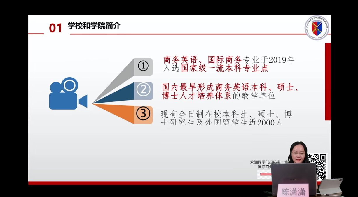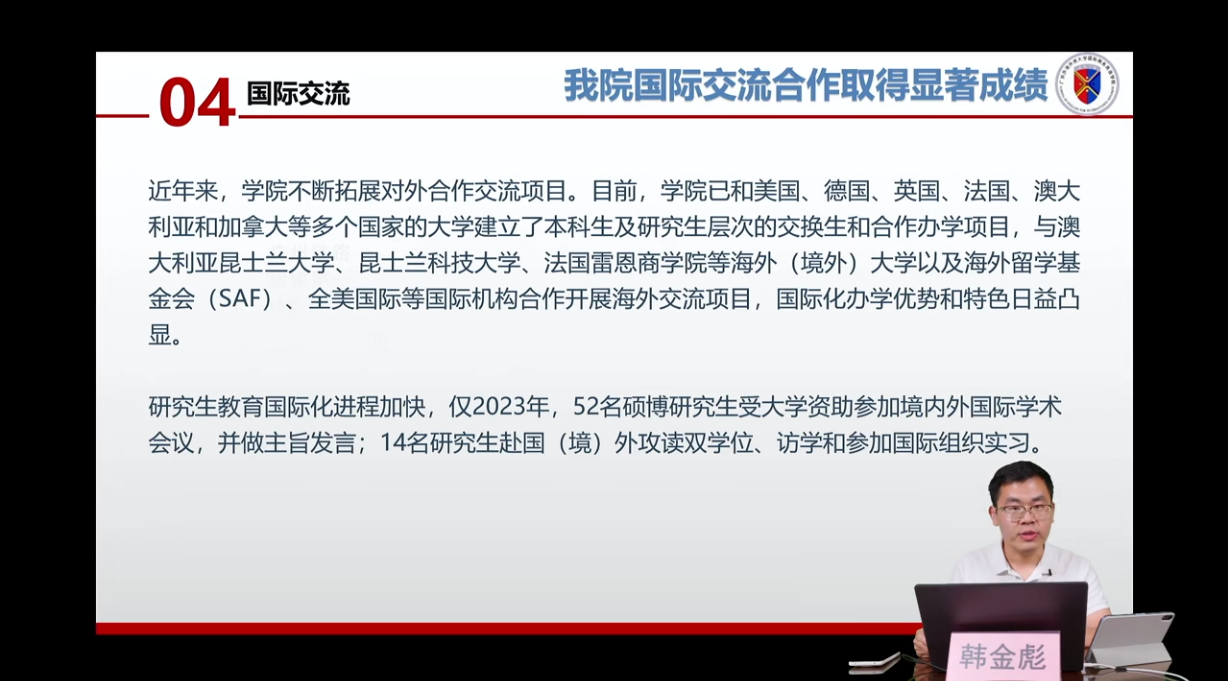 宣讲会由WilliamHill中文官方网站陈潇潇副经理主讲,研究生办公室卢楠主任、国际项目中心韩金彪副主任、在读博士生王良莉参与此次直播,从学科历史沿革、学科优势、团队队伍、培养特色、培养成效、毕业生去向等方面,对公司情况进行了全面的介绍。