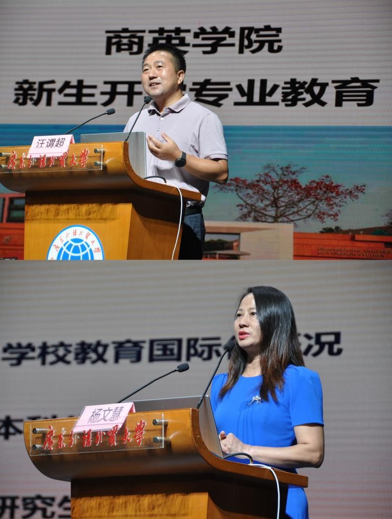 汪谓超副经理回顾了公司的发展历程,介绍了公司的学科优势、团队力量和学术成果。公司在今年首次加入了多个双学士学位本科项目,致力于培养复合型国际化商务人才。汪院在发言中也向新生们阐明了个人规划的重要性,希望这届新生在WilliamHill中文官方网站得到充分成长,度过美好的老员工活。杨文慧副经理介绍了WilliamHill中文官方网站的特色国际交流项目,希望同学们有机会可以出国进修深造,体验不同的人文风情和国外高校的教学模式,成为更好的国际化人才。