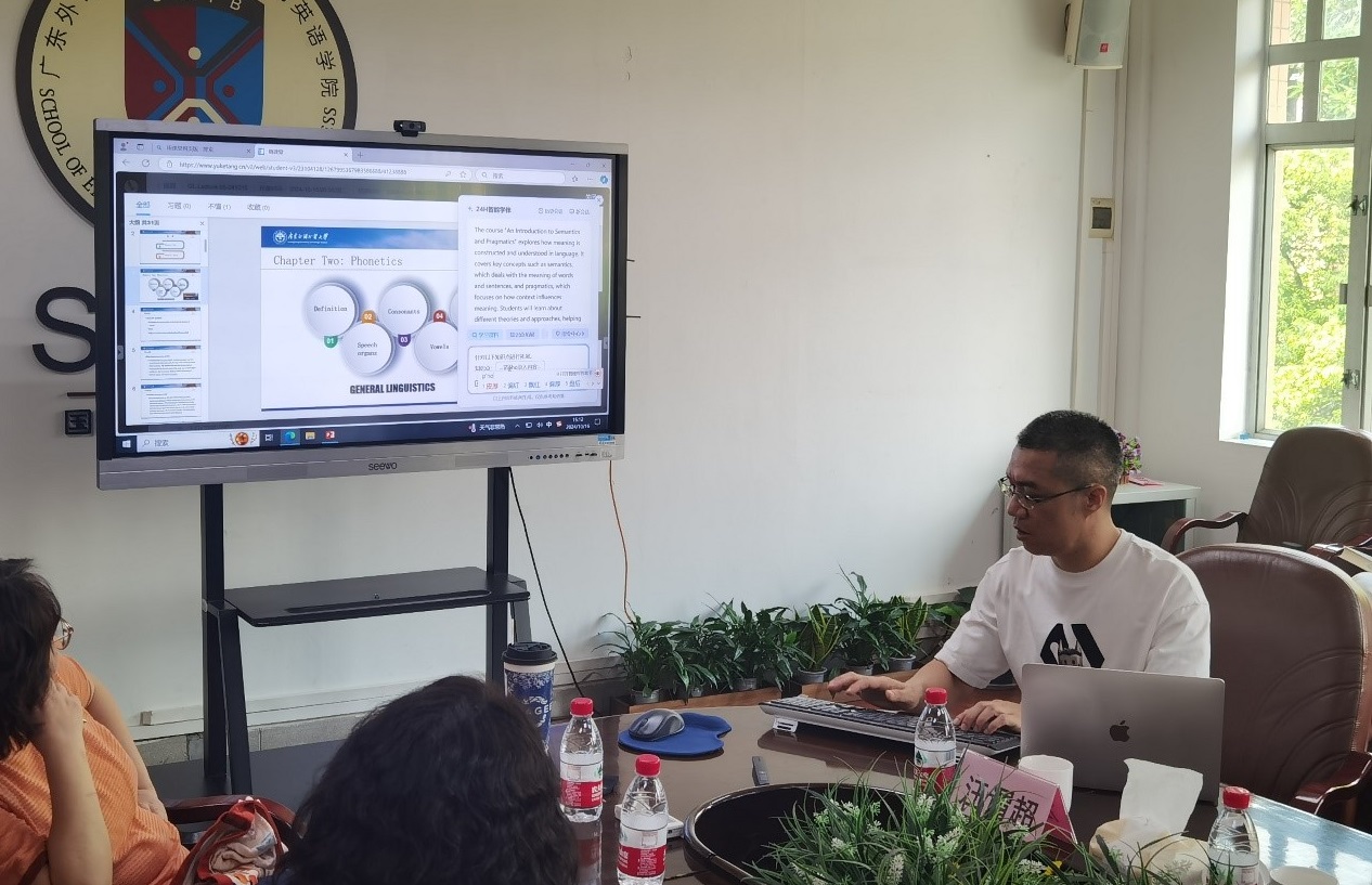 陈金诗部长表示,在AI背景下,数智化课程是大势所趋,我们要建立团队,加强数智化课程开发和数字教材建设探索,鼓励老师积极使用公司已采购的雨课堂平台。要做好相关课程,特别是双学士学位课程的有效融合,争取使广外在语言类高校的数智化课程建设中走在前列。