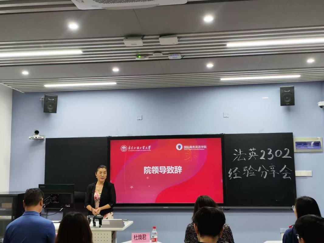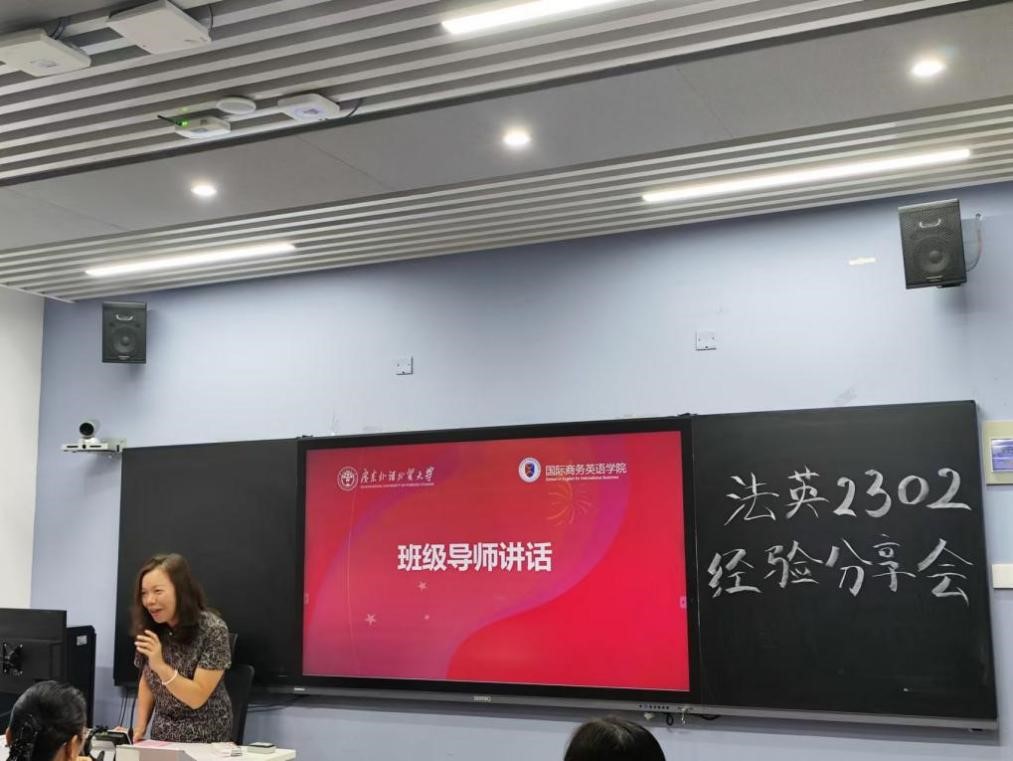 2024年10月17日晚上,商务英语(国际经济法)2302班(以下简称“法英2302班”)校外导师见面会暨学习经验分享会在一教南楼209教室顺利举行。国际商务英语公司党委杜焕君副书记、法英2302班校外导师周军伟律师、法英2302班班级导师谢静老师、2023级本科生辅导员赖志鹏老师及法英2302班朋辈导师吴婉琳出席此次会议。法英2302班同学参与此次见面分享会。