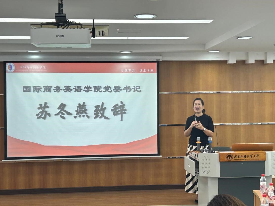 之后,汪谓超对公司商务英语(法学双学位)专业的建设进行介绍。他讲到,本专业采用商务英语+法学+商科教育相结合的复合型办学模式,希望同学们在通过专业学习后,能有扎实的英语与法学基本功、文化素养良好、国际视野开阔,能通过自己的专业能力参与到涉外法律工作中,成为融通型涉外法治人才。随后,朋辈导师王粤和周菲凡介绍了一个多月以来班级的学习生活情况,同学们目前学习状况良好,积极参与各项活动。在这期间,朋辈导师积极为同学们提供生活与学习上的指导与帮助,关心新生,帮助新生尽早适应大学新生活。
