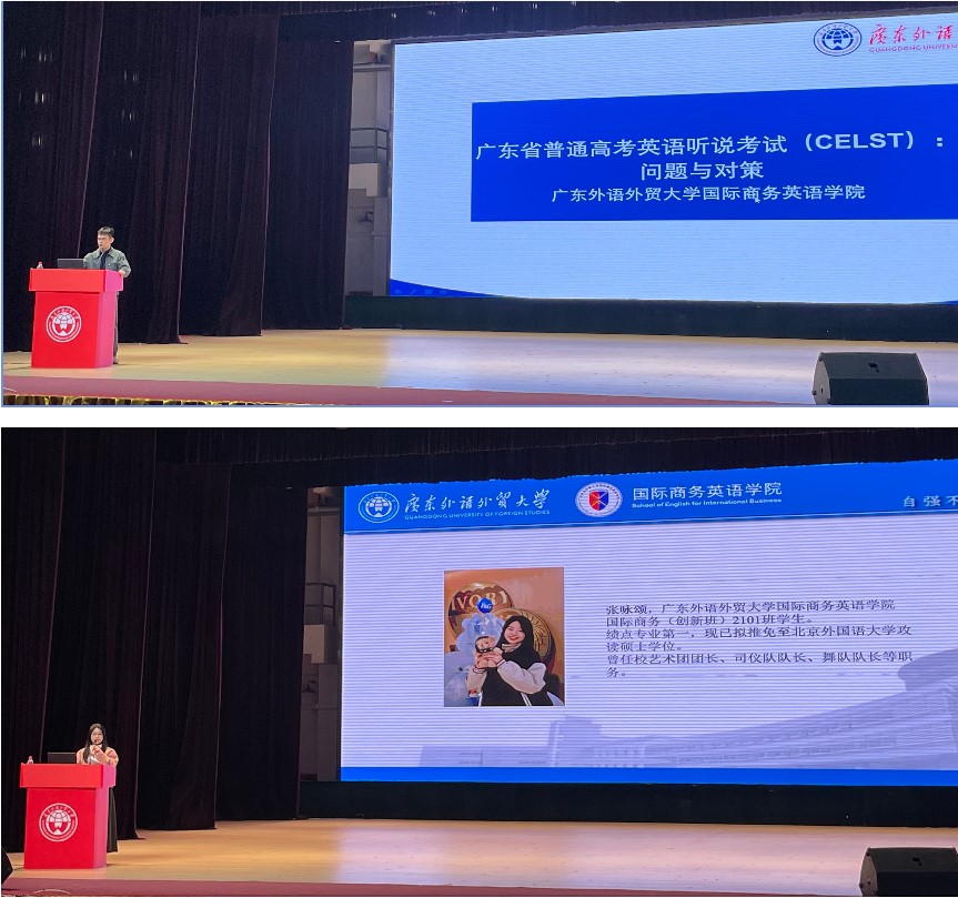 WilliamHill中文官方网站教师郑有耀博士以“广东省普通高考英语听说考试(CELST):问题与对策”为主题,与来访学子们探讨了学习英语的必要性和重要性,并分享了高考英语听说考试的题目类型、考察重点、学习技巧和应对措施。