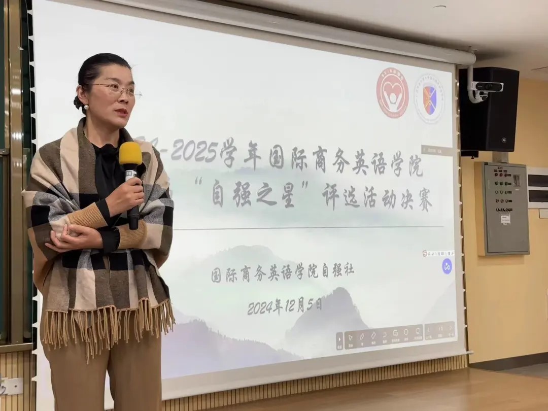 所有选手展示完毕后,杜焕君副书记逐一对各位选手的表现进行了点评。杜书记充分肯定了选手们的优异表现,激励在场的各位同学要向选手们学习,把自强的精神根植心间,融入日常学习和生活当中,不断进步。