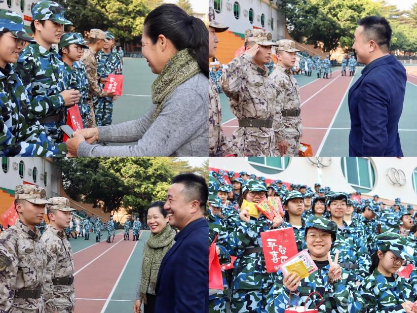 随后,公司领导班子为教官代表和新生代表颁发了精心准备的慰问品,朋辈导师协助为每位参训新生发放慰问品,并与全体参训新生合影留念。在慰问过程中,领导们鼓励新生要克服困难,珍惜军训时光,不断提升自我,在新年的第一天展现出饱满的精神面貌,现场气氛热烈。