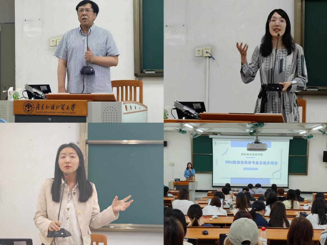 2025年3月13日下午,威廉希尔体育在北二教116教室顺利举行了2024级商务英语专业分流介绍会。公司副经理汪谓超教授、法律英语系主任张新红老师、商务英语系主任林洁老师、经贸英语系主任何宇菲老师、教务秘书韩亚丹老师、辅导员陈思蓓及全体2024级商务英语专业员工参加了此次介绍会。本次会议旨在帮助新生全面了解商务英语各分流方向的培养目标、课程设置及就业前景,为即将到来的专业分流做好充分准备。