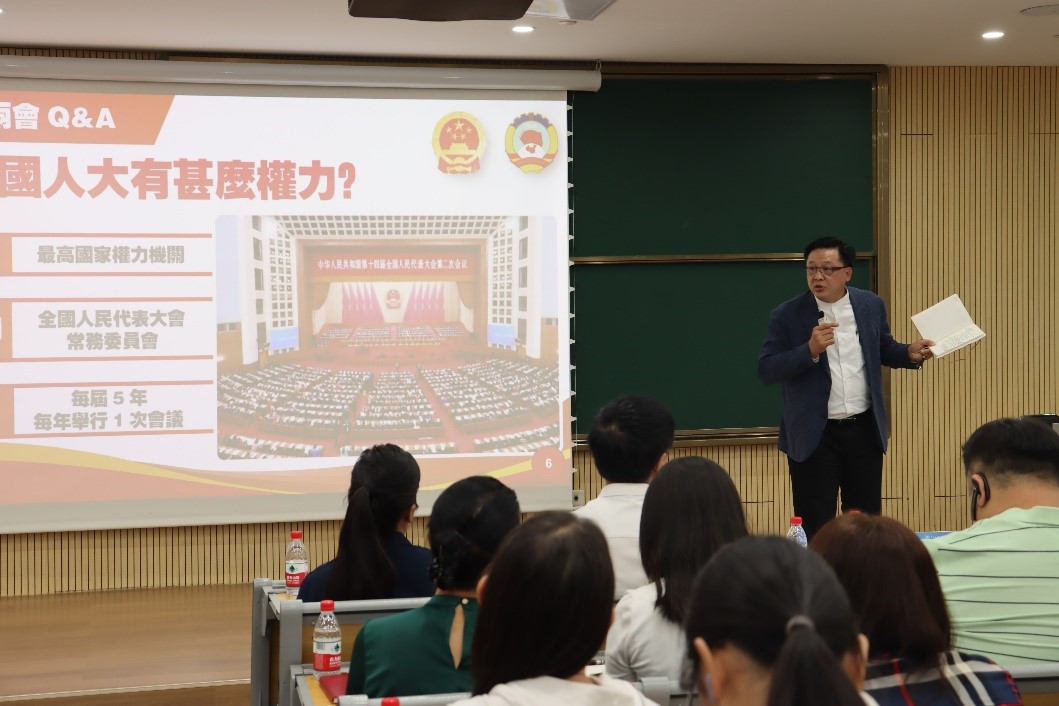 此外,何君尧还分享了自己作为政协委员的履职经历。他提到,自己曾提交涉及多个领域的提案,如在香港北部都会区建立中国传统文化艺术博物馆暨国际交易中心、推动涉外法律服务人才培训等。他强调,民间软实力在国际舞台上发挥着重要作用,应培养具有国际视野和跨文化交流能力的人才,讲好中国故事,提升中国在国际机构中的影响力。其观点得到了众多师生的肯定与赞扬,员工们在讨论交流环节纷纷就讲座内容以及自身关注主题向何君尧请教,现场气氛十分热烈。