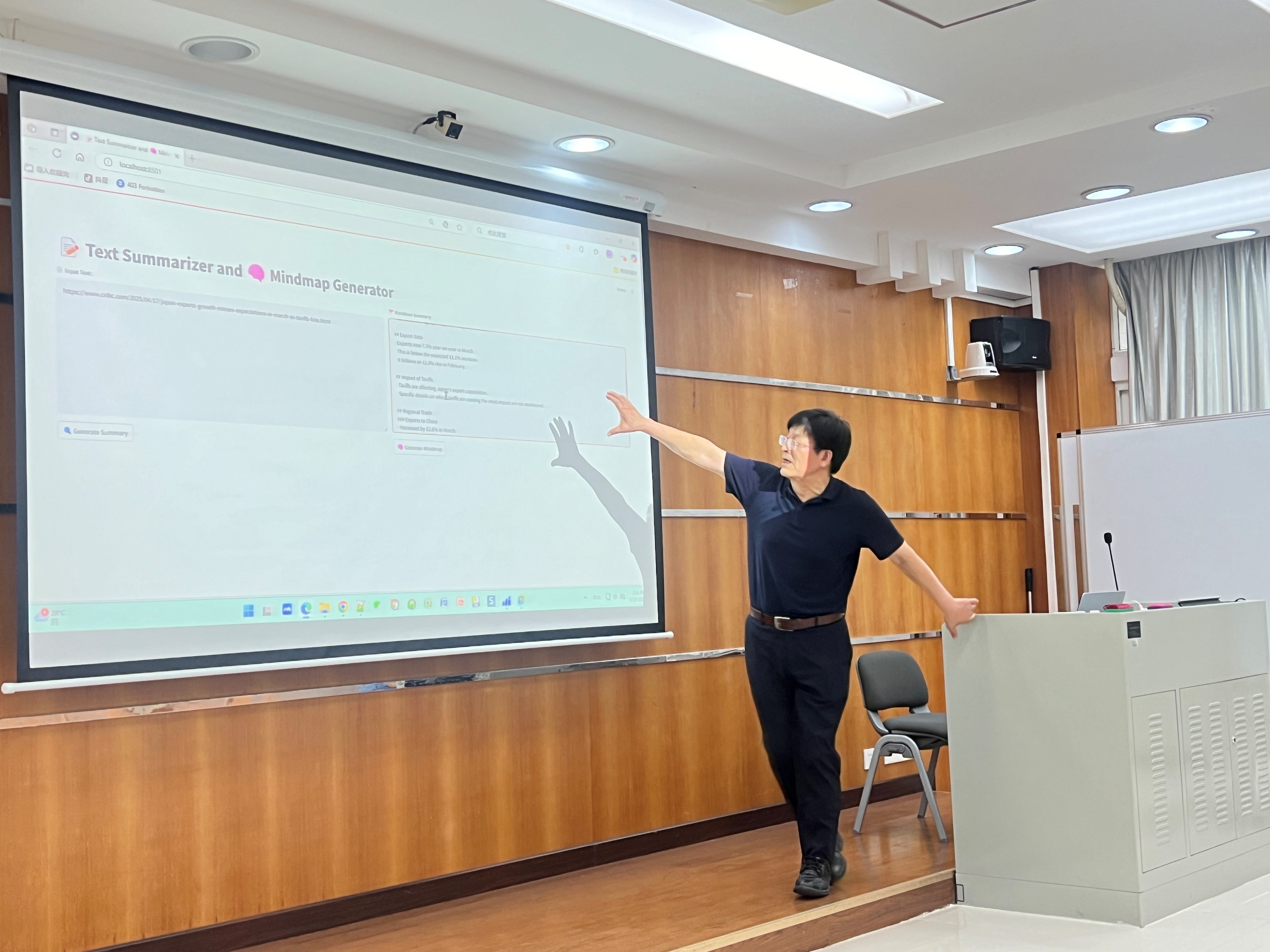 讲座伊始,梁茂成教授详细介绍了大语言模型的原理,对比了GPT与双向预训练模型的差异等,强调GPT这类单向模型在后文预测和内容生成方面表现突出,而双向模型在理解上下文语义上更具优势。他以北航大学外语公共课改革为例,分享如何将大模型融入教学实践。在写作教学上,团队设计系列课程教学模式,引导员工的写作能力逐渐从通用英语表达向学术英语表达过渡。在讲座过程中,梁教授通过展示大语言模型的操作实例,让在场师生直观感受大语言模型的强大教学功能。他现场演示如何使用大语言模型将网页文本转化为结构化摘要和思维导图,辅助员工阅读与写作,培养全局观,提升写作逻辑等各类方法。他强调,编写高质量指令是与大语言模型有效沟通的关键,恰当有效的指令能让大模型更好地理解用户需求,输出高质量的生成结果。同时,他鼓励师生积极尝试用英语编写指令,以适应大语言模型以英语语料训练为主的特点,在实践中提升英语应用能力。