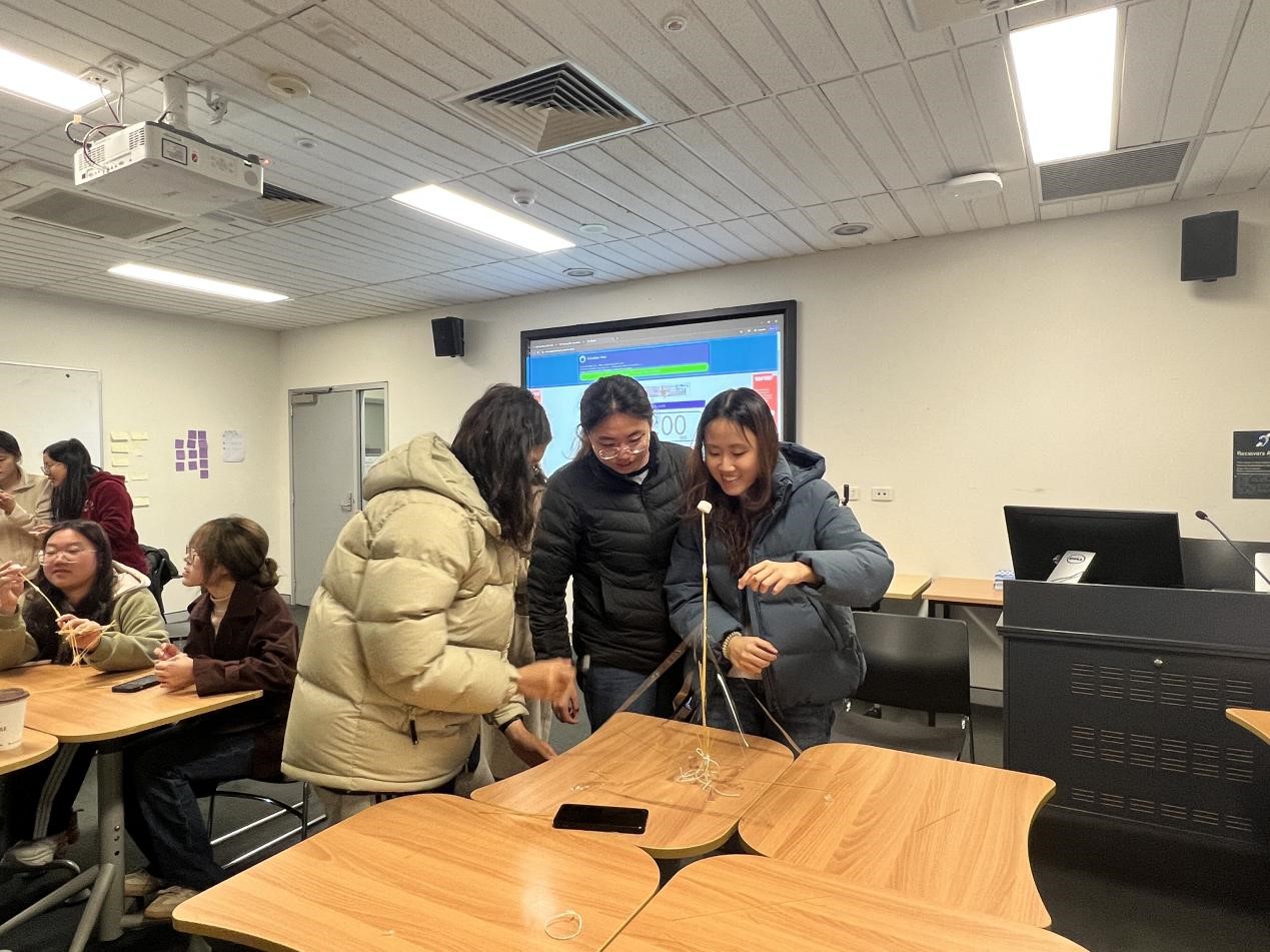 同学们参与“棉花糖塔挑战”实战任务