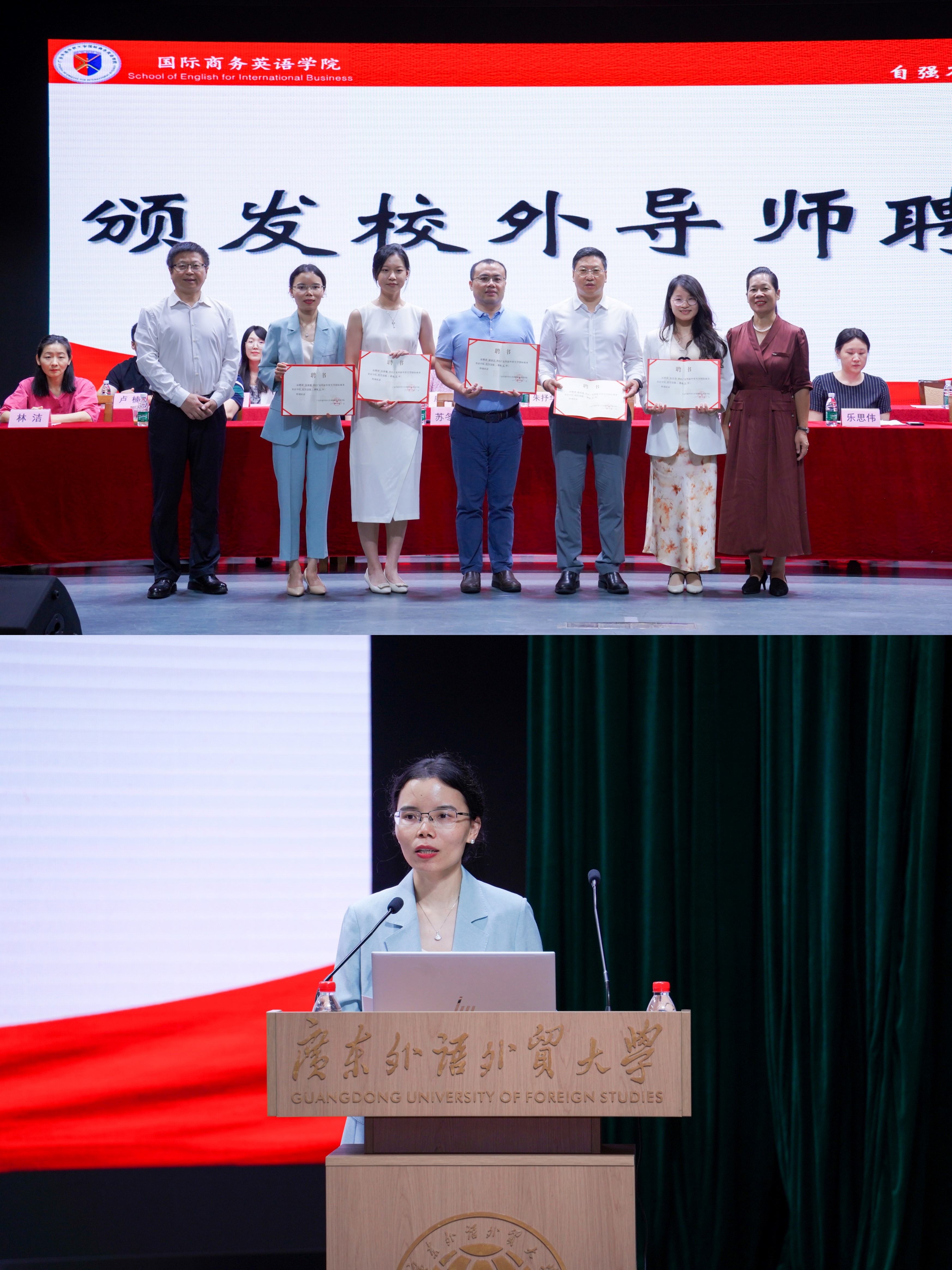 典礼举行了2025级本科生校外导师聘书颁发仪式,胡春雨经理、苏冬燕书记为出席的校外导师颁发聘书。随后,校外导师高琳敏女士勉励新生珍惜当下、珍惜平台、珍惜同窗,保持求知热情,提升沟通能力,珍视同窗情谊,把握机遇实现自我价值。