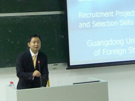 5月28日晚七时,受公司国际商务系管理课程组邀请,人力资源管理专家Keith Cheuk为公司师生做了一场题为“Executive Recruitment-Recruitment Project Management and Selection Skills(行政管理人员招募-招募项目管理与甄选技巧)”的讲座。