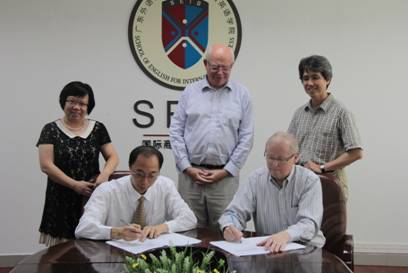 双方并就之前沟通的关于WilliamHill中文官方网站商务英语硕士专业与北园大学商公司商务管理硕士专业的双硕士协议的细节进行了讨论。之后,郭桂杭经理代表公司,Wesley E. Lindahl经理代表北园大学商公司签订了更新之后的双硕士协议。
