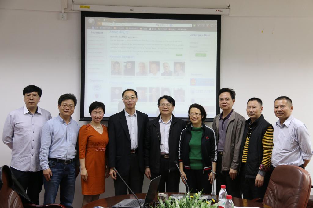 3月17日下午,广州市中级人民法院刑事审判第一庭万云峰庭长,庄惠婷副庭长、丁阳开审判长、黄敏洽审判长、但振亚审判长一行莅临公司,与公司郭桂杭经理、袁传有博士、张新红博士、沈璐老师等就广州中级人民法院协办今年7月6-9日在公司举行的第12届国际法律语言学大会进行了交流。郭桂杭经理向万云峰博士、高级法官、庭长颁发了客座教授和商务英语(国际经济法)课程建设顾问聘书。