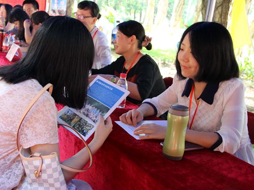 6月20日上午9点,公司2015年开放日在北校区主校道举行。大学开放日旨在为应届高考员工与家长提供更详尽的公司与专业信息,以方便考生报考,为公司吸收新鲜血液。公司党委书记车小真,副经理彭玲玲、蒋涌,党委副书记张林茂,公司系主任以及各年级辅导员们顶着烈日,亲临现场为考生和家长们解疑答惑。