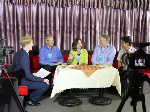 适逢IAFL首次在亚洲召开双年会,Face Time栏目组和广外的大会组委会专门策划了法律语言学专场访谈,主持人和学者专家们用通俗易懂的语言,在轻松幽默的气氛下畅谈了法律语言学的历史、现状和未来。这4位专家代表分别是国际法律语言学家协会现任主席、美国南加州大学Edward Finegan教授,国际法律语言学家协会现任副主席、英国阿斯顿大学Tim Grant教授,澳大利亚新南威尔士大学Sandra Hale教授以及国际法律语言学家协会执委会委员、WilliamHill官方网站袁传有教授。