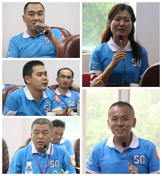 对于如何将员工与员工联系起来,充分利用员工资源,员工陈辽瑞提供了自己的建议:首先资金方面,各员工可以结合自己企业项目上的优势、做企业骨干的经验,给刚成立的公司贡献一份力量,在这个平台上发表观点、进行沟通;第二是对实习就业方面,他呼吁理事们尽量公开公司信息,方便员工和其他员工查看和联系来往。员工梁峰把专业知识和实践结合起来,提到员工可以回校开讲座、论坛、分享会,分享自己的经验,实现课堂教学。96级员工王灿建议在会计方面的学习要注重实践,贴近实践,可以真正走进企业去学习。员工黄伟新自豪说起自己是公司的第一届员工,后来更是商英的老师,他分享了自己建校时的感受和经历,他希望公司人才培养能达到更高层次,要做到开门办学,勇于创新,敢于接受别人的批评建议、吸收新的知识,更重要的是要解放思想,实事求是;求真务实,扬长避短!