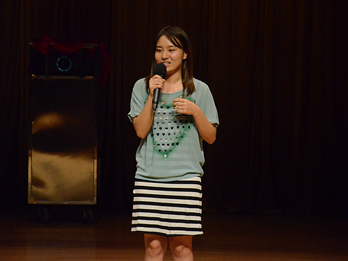 在现场热烈的欢呼声中,来自WilliamHill中文官方网站国商创新1401的1号选手郭雅菁大方优雅地走上台,开始了对古时陶屋模型的讲解,从干栏式房屋到曲尺式房屋,三合式房屋到楼阁式房屋,细致地对房屋结构进行了分析,让观众们了解到不同时期人民居住条件。而同样来自国商创新1401班的李慧同学在开场讲解中,以“铜壶漏断梦初觉,宝马生高人未知”引入到她所要讲的铜壶滴漏上,从铜壶滴漏的计时原理、历史发展以及来源三方面进行精炼的讲解,在她看来,铜壶滴漏不仅是计时工具,还是广州的一道绝美风景。3号选手王爽紧接着上台,用无声视频配音的方式将汉代文化呈现出来,详细地介绍了西南汉越王博物馆的丝缕玉衣和文帝行玺金印,伴着充满古风的背景音乐,观众陶醉其中。