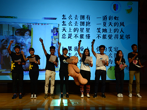 而CC Team则在舞台剧里再次“走进”雍景园小学,牵起孩子的小手。剧中,面对小朋友们顽皮的“刁难”与哭笑不得的回答,面对小朋友们各种状况,他们施展浑身解数。他们的付出最终迎来了孩子的喜爱。剧中CC Team与孩子们的离别场景传递的淡淡忧伤如那歌曲《小手拉大手》,久久萦绕在报告厅。