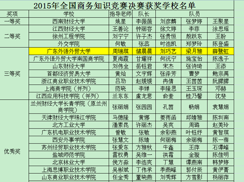 近日,商务部外贸发展事务局公布了2015年12335全国商务知识竞赛决赛获奖结果,由公司刘巧艺、梁月雅、储晨晨和薛鹭虹组成的BLUESKY代表队凭借精彩的表现在初赛和决赛中脱颖而出,获得全国三等奖的好成绩。