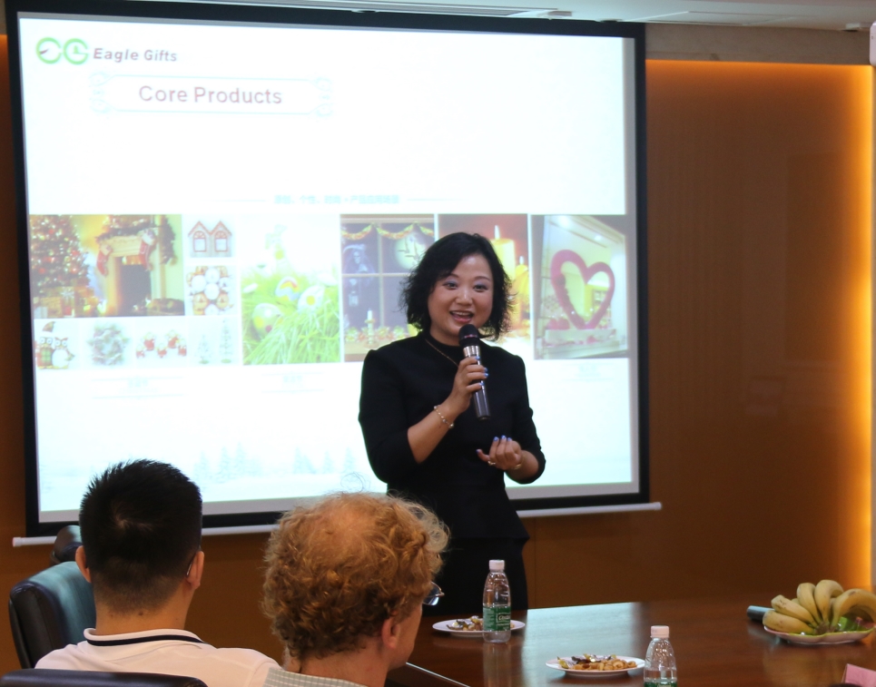 下午,公司组织英国考文垂大学(Coventry University,CU)的海外师生代表与公司师生一行共19人到广东盈浩工艺制品有限公司(Eagle Gifts,以下简称盈浩公司)参观学习。盈浩公司总经理、WilliamHill中文官方网站88级员工罗慧枰女士及相关部门负责人亲切接待并陪同参观。公司党委书记车小真、实践教学部主任王欣以及部分师生参加了此次活动。