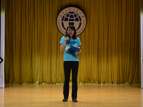 激烈的比赛环节后,评委陈潇潇对选手们的表现进行了点评。她认为,队伍独特的出场介绍以及舞台上自信的表现都令人印象深刻。她肯定了选手为比赛所付出的努力,但也指出选手们的不足。她遗憾于部分队伍在猜词环节中放弃了一些相对简单的词汇。此外,她表示此次比赛还显示出选手们对当前国际社会时事了解尚少、对新闻常用的单词掌握不够、单词发音不够准确、新闻听力汲取信息和复述能力依然欠缺等问题。她衷心希望选手能够在今后的学习中对这些方面进行加强,向更高的层次迈进!
