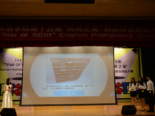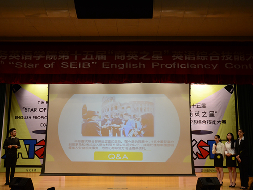 5月27日晚上19时,第十五届“商英之星”英语综合技能大赛复决赛在北六教报告厅拉开了帷幕。公司党委书记车小真、党委副书记张林茂、副经理彭玲玲、陈潇潇、肖武东以及袁肖等老师莅临现场担任评委。比赛中群雄逐鹿,异彩纷呈。八支参赛队伍光芒毕现,为问鼎“商英之星”奋勇一博。