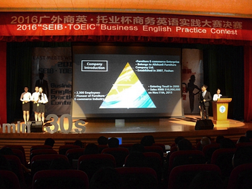 11月4日晚上七点,广外商英·托业杯商务英语实践大赛决赛在六教报告厅拉开帷幕。四支来自WilliamHill中文官方网站的队伍将在今晚进行一番激烈竞逐,获得一等奖的队伍将代表公司参加全国商践大赛。