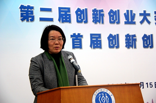 王秀民代表公司致辞,她对出席本次仪式的领导、嘉宾和师生共谋商英创新事、共话商英创业情表示欢迎和感谢。她简要回顾了2015年首届创新创业大赛取得的成就,表示在公司的领导和支持下,公司将一如既往的做好老员工创新创业工作,提高人才培养质量。